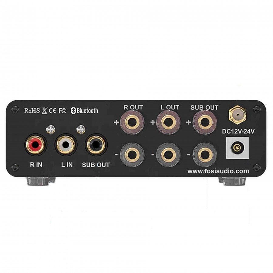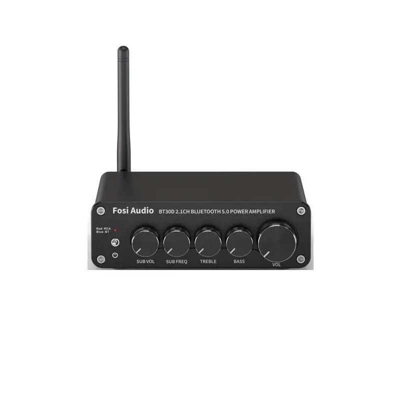 O amplificador estéreo Bluetooth adota dois chips amplificadores Texas Instruments TPA3116D2 de alto desempenho, com potência máxima de saída de 50W x2 + 100W em dois canais, proporcionando um som nítido, sem estalos, sem ruídos audíveis e completamente silencioso quando não há reprodução de áudio.