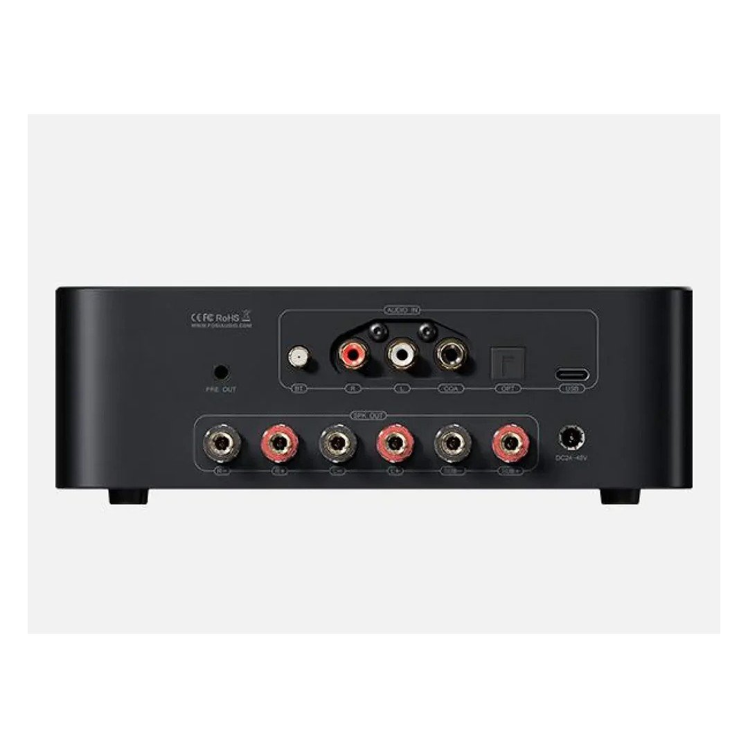 Entradas: BT/RCA/OPT/USB/COA; Saídas: Caixas de Som Passivas/Subwoofer/Pré-saída
