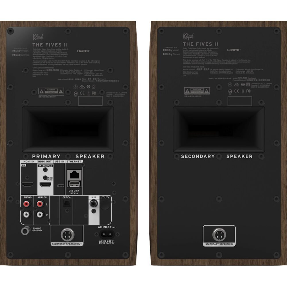 O sistema The Fives II da Klipsch é compatível com qualquer fonte de áudio. A entrada HDMI-eARC captura formatos de alta resolução sem compressão, incluindo Dolby Atmos, diretamente da sua televisão. O Bluetooth permite transmitir áudio de alta qualidade do seu dispositivo inteligente. As entradas analógicas RCA estéreo — com pré-amplificador de fono integrado — permitem conectar seu toca-discos. Uma entrada óptica é compatível com diversas fontes digitais. Você também conta com uma entrada USB para conectar ao computador e Wi-Fi integrado para usar Apple AirPlay 2, Google Cast, Spotify Connect, Tidal Connect, Qobuz Connect e outros serviços de streaming. Na Sweetwater, apreciamos a flexibilidade das entradas do The Fives II — você pode reproduzir qualquer coisa neste sistema estéreo de estante com som incrível.