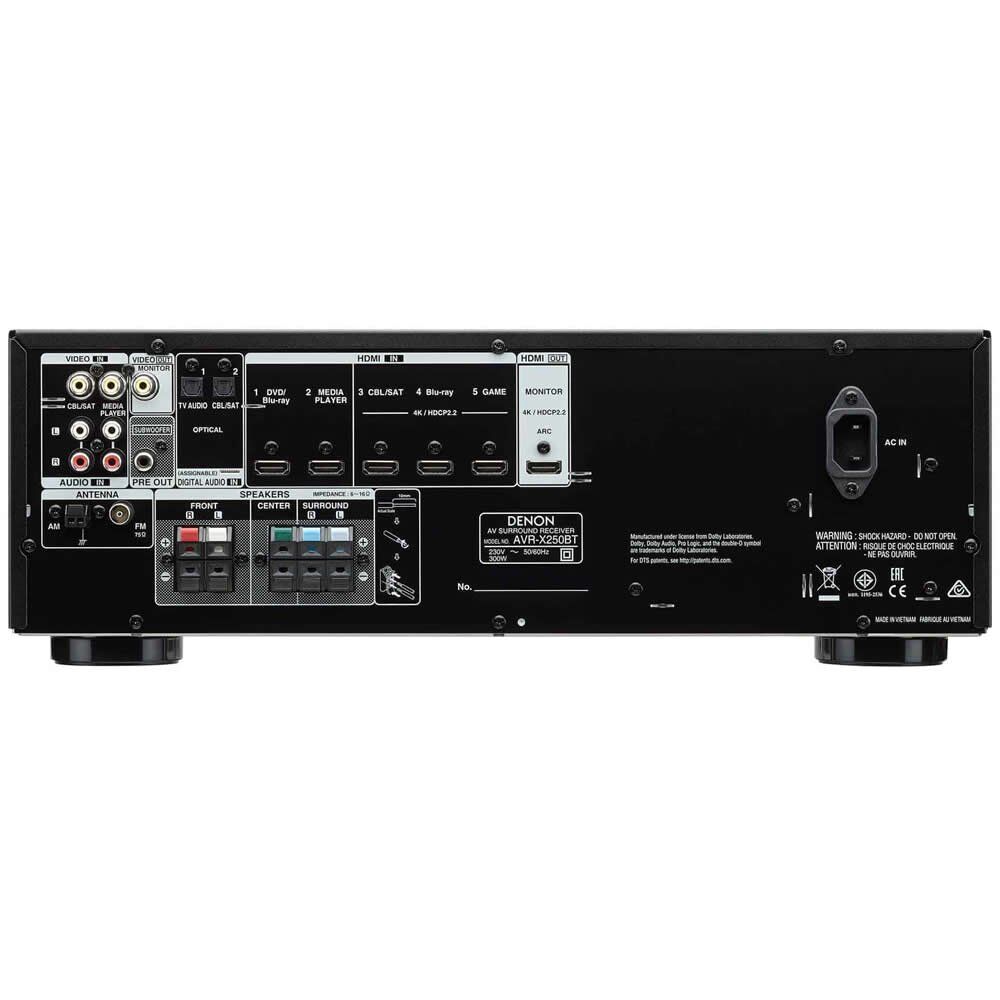 O Denon AVR-X250BT é um canal 5.1. Receptor AV 4K Ultra HD com Bluetooth