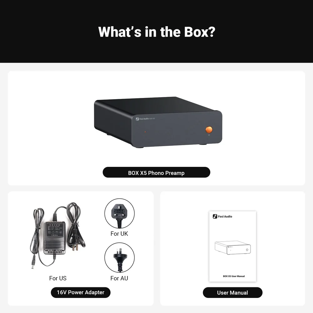 Alto desempenho: O pré-amplificador de fono BOX X5 é compatível com cápsulas MM e MC, apresentando 4 configurações de ganho e uma excelente equalização RIAA precisa para fornecer uma passagem de sinal limpa e direta quando emparelhado com seu toca-discos.