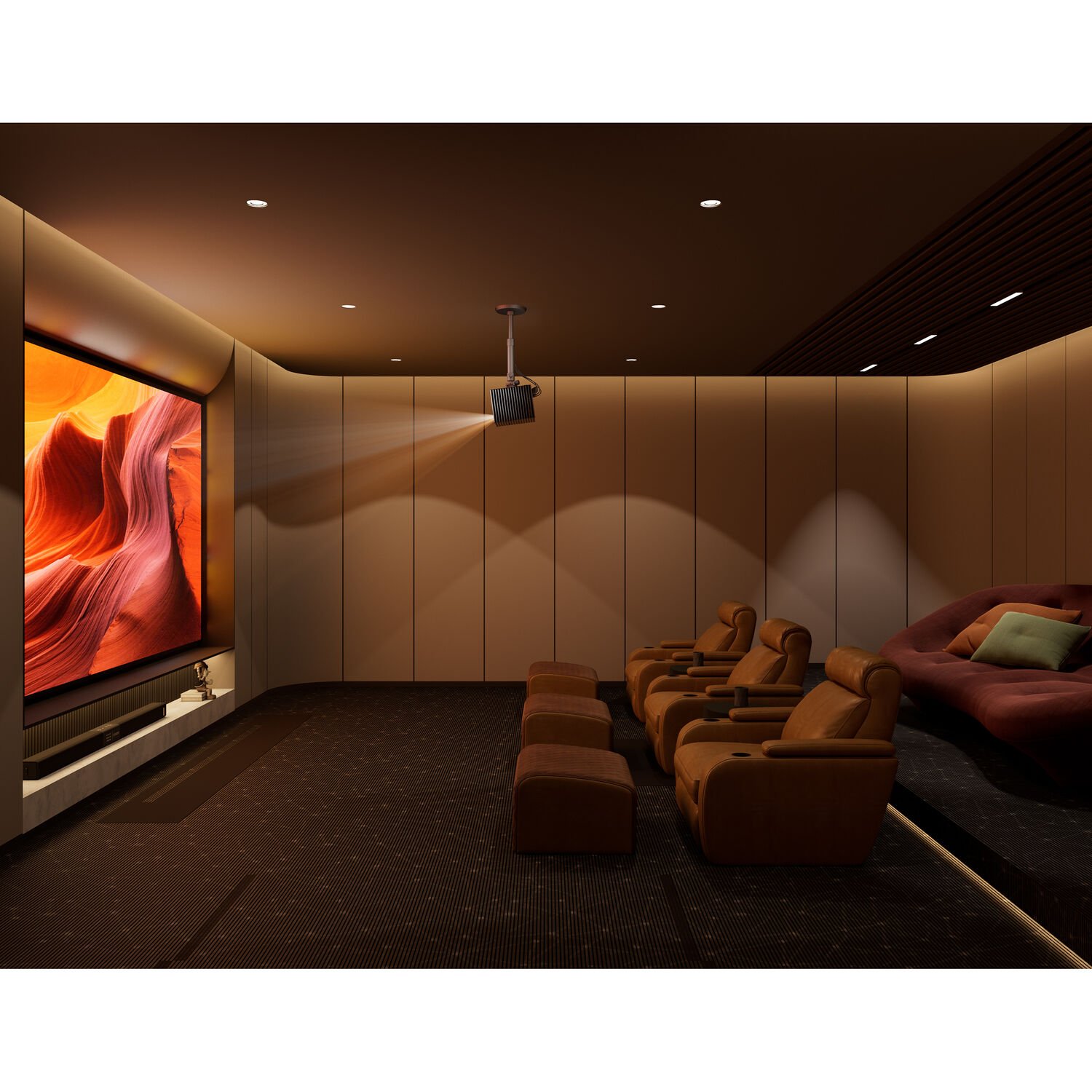 A tecnologia Anti-RBE reduz o efeito arco-íris e o pontilhado observados na projeção DLP.