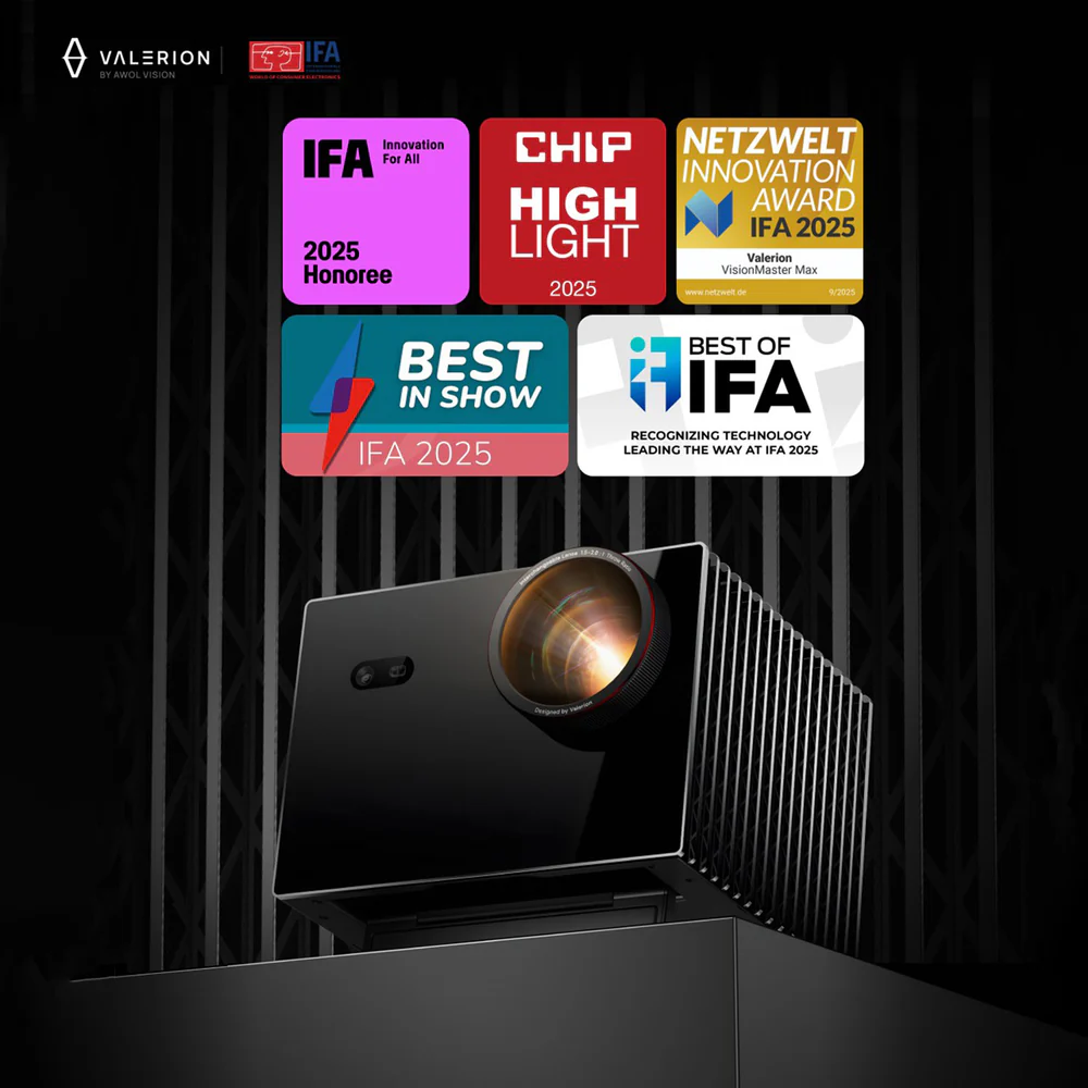Muitos projetores anunciam altas taxas de contraste, mas até mesmo modelos com alto contraste dinâmico frequentemente falham em cenas escuras, que acabam aparecendo acinzentadas e sem vida. A Valerion redefine o padrão com sua tecnologia proprietária Nível de Preto Aprimorado (EBL), utilizando análise de quadros em tempo real por IA para ajustar precisamente a potência do laser RGB em cada cena. O resultado são pretos verdadeiramente profundos, ricos e imersivos – não apenas mais escuros.