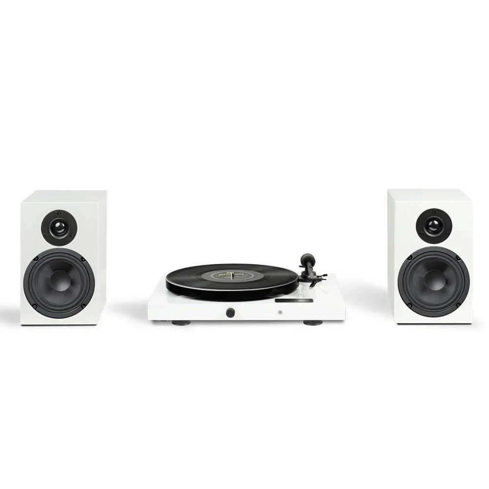 O Juke Box E1 é um toca-discos, pré-amplificador de fono, receptor Bluetooth, pré-amplificador de linha e amplificador de potência em um único aparelho, necessitando apenas de um par de caixas acústicas para formar um sistema completo. Se você pensava que um sistema de toca-discos para iniciantes era complicado de configurar, o Juke Box E1 prova o contrário. Este toca-discos com acionamento por correia oferece o processo de instalação mais rápido possível, pois já vem pré-ajustado de fábrica e proporciona uma qualidade de som excepcional. A força de rastreamento e o antiskating já vêm pré-ajustados para a cápsula Ortofon OM 5E pré-instalada.