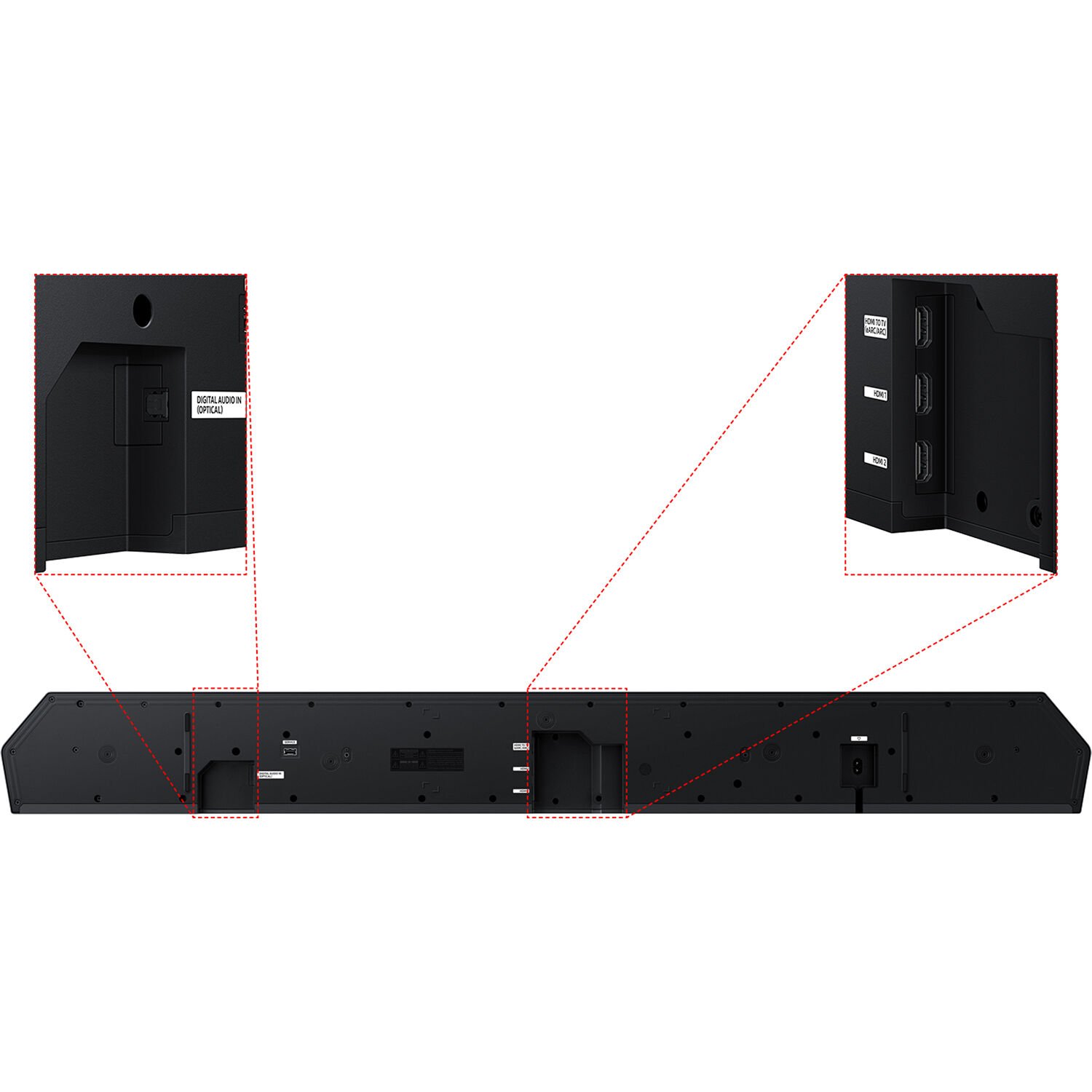 Entrada/saída HDMI com eARC, entrada óptica