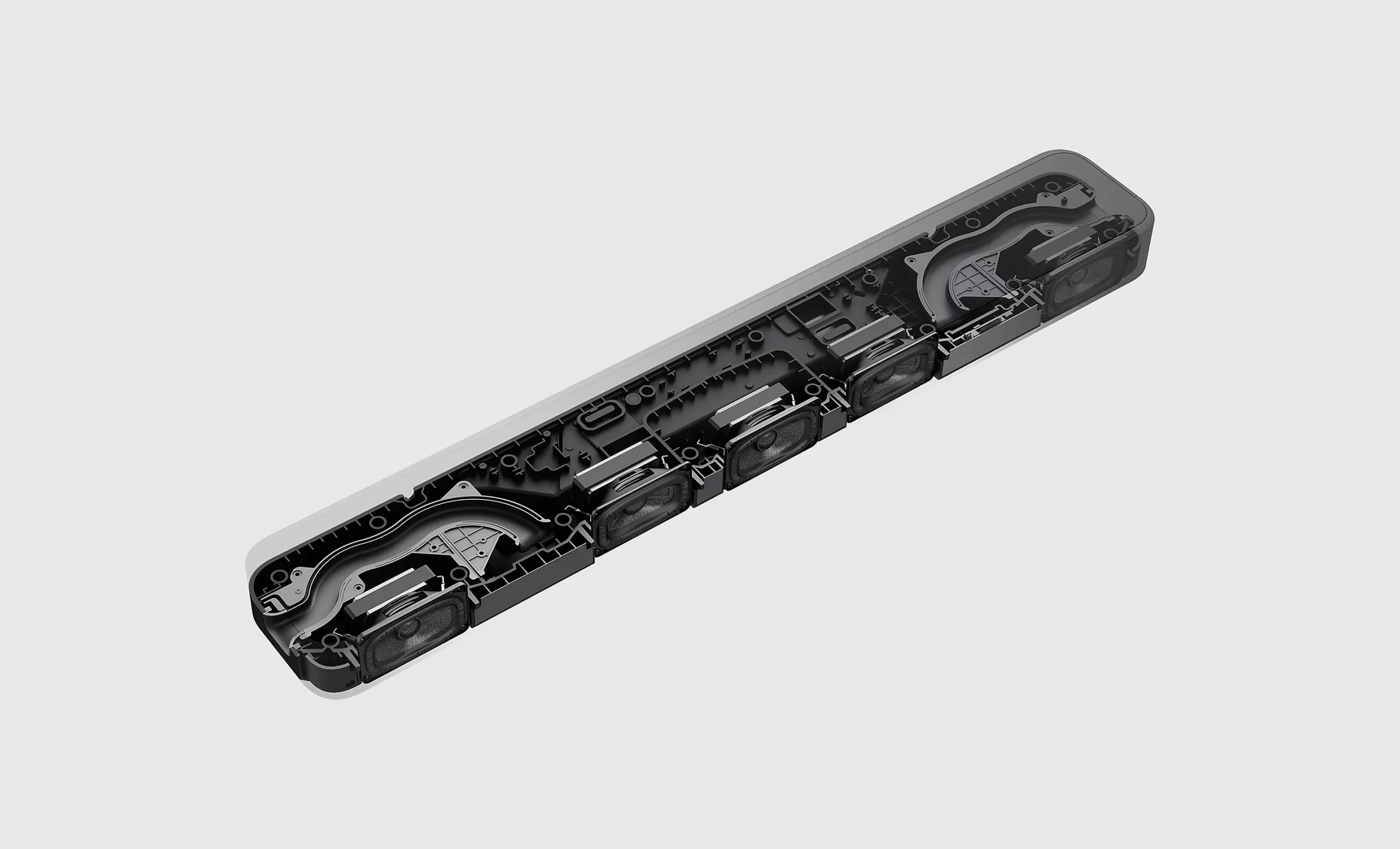 Uma combinação das nossas mais recentes tecnologias acústica e de processamento de sinais para recriar um vasto palco sonoro. A coluna central garante diálogos nítidos, enquanto o subwoofer duplo incorporado produz graves profundos.