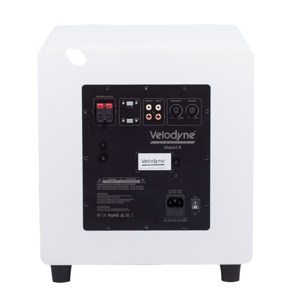 A série Impact X cria uma impressão duradoura com som de baixa frequência incrível. O atraente gabinete de MDF dos subwoofers com acabamento em preto e branco também combina perfeitamente com interiores modernos. A experiência musical e de home theater em específico do menor pacote possível se beneficia enormemente dos drivers de 10 e 12 polegadas completamente redesenhados, que definem novos padrões nessa faixa de preço. Um amplificador Classe D altamente eficiente, junto com as principais tecnologias da Velodyne Acoustics, minimiza a distorção e torna possível um desempenho de graves incrível.